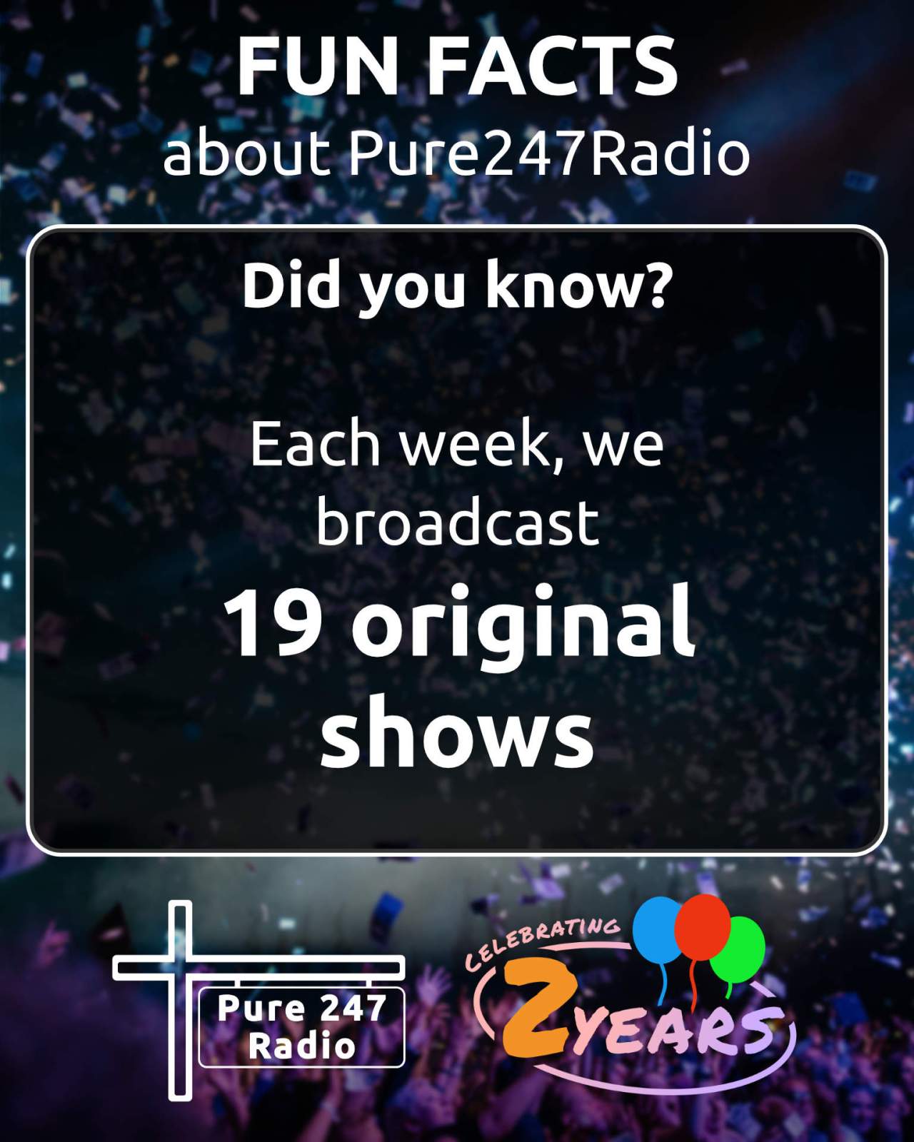 There are Some Fun Facts further down that show what God has done in us and through us. And, two years later, we’re still shouting about what God has done! And we love creating Pure Media that is Three Point Pure: No. Bad. Language.